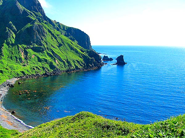 金田ノ岬にある船泊漁協の直営店で、うに丼や毛がに三色丼が人気のようです。直営店から幌泊の海岸線にはアザラシが遊んでいる事も。地元釣り師によると礼文空港の登り坂ピークからスコトン岬に落ちる夕陽も綺麗だが、最高なのは漁り火の時という。◇礼文町船泊 金田ノ岬