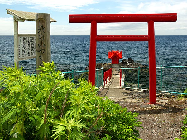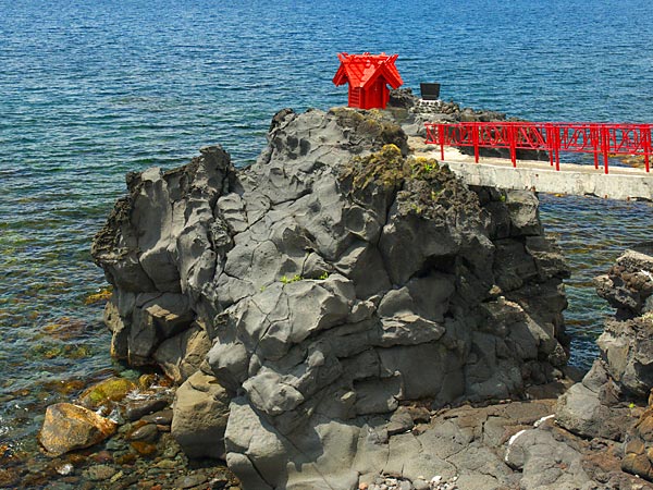 地域信仰であった「龍神の岩」と、昔、嵐で岩に打ち砕かれそうになった弁財船を弁天様が救ったこという話から、赤い鳥居が龍神の岩に祠が建立されたて今でも船の安全を守っている。祠の右手に黒い石碑があり「龍神の岩」と、元総理大臣の「三木武夫」の文字が刻まれている。