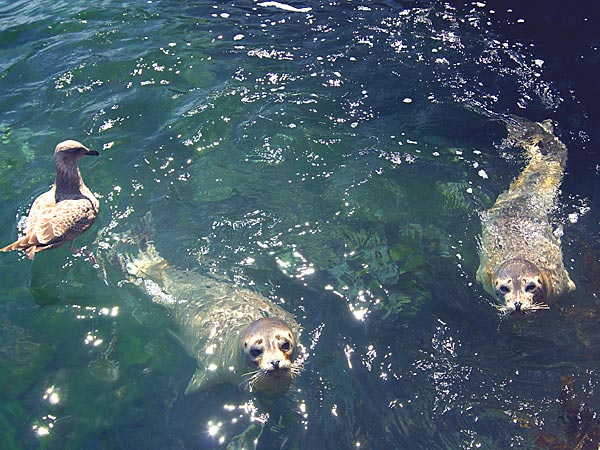 仙法志御崎公園の海岸探勝道にある自然磯観察場には大時化で親にはぐれた子アザラシが(2009)飼育されておりで人の姿を見ると近づいてくるので人気者となっている。自然のプールなので透明度は高く海底の様子がよく見えます。偏光タイプのサングラスを持参すると完全。野生のアザラシは利尻富士町のポンモシリ島の磯でみられますが双眼鏡があるとよい。