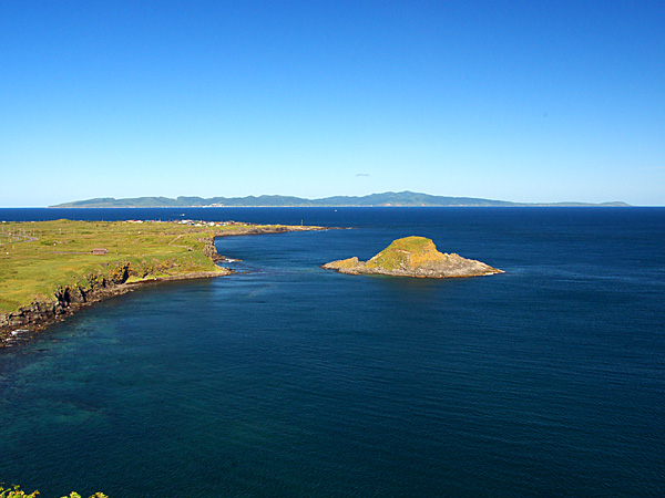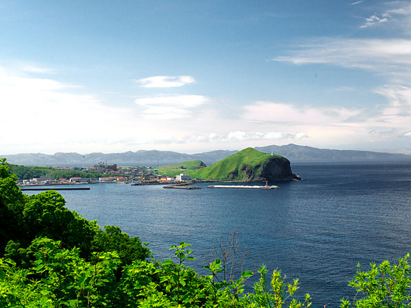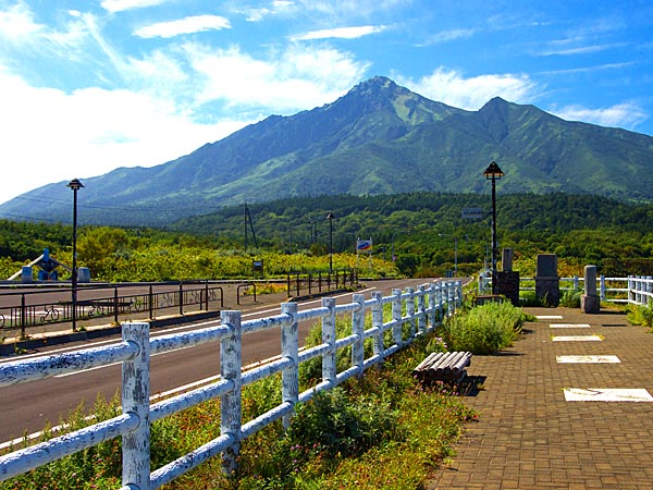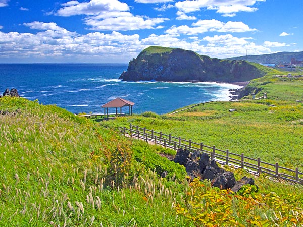 正面に鴛泊港を見渡す展望台で高級コンブのブランド利尻昆布やウニ漁の様子が間近で見られます。小砂利の浜辺が星昆布の帯で覆われるのも利尻ならではの光景。ほぼ利尻島を一周するサイクリングロードが整備され、此処が起点。