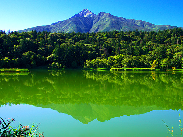 原生林に囲まれた周囲800mの湖で湖畔を一周出来る遊歩道が設けられています。風のない晴天時には湖面に鏡のように映る「さかさ富士」を見る事ができます。姫沼は元々小さな複数の沼で湧水があり人工的に三つの沼を繋いで水位を調節して出来た沼。ヒメマスを放流したので姫沼と言うとか。姫沼から1km程下ると「姫沼展望台」があり鴛泊港と礼文島と遠くサロベツの海岸線まで見渡せます。◆利尻郡利尻富士町鴛泊湾内 姫沼遊歩道沿