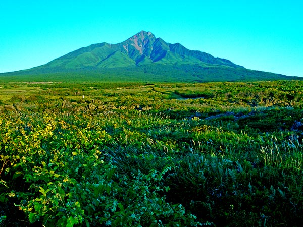 利尻島は日本海に浮かぶ美しい火山島で、中央に利尻富士の別名がある海抜1719mの利尻山が聳えています。遠くから見ると綺麗な成層火山ですが近づいてみると、今なを崩壊と浸食の進む山で、登山者には憧れと同時に危険な山でもあります。利尻山の稜線は四方に広って豊かな裾野を造り、島の周囲はおよそ60km、島と言っても山岳から湿原まで多様な自然が詰まっている北海道では一番大きな島。植物は利尻島特有の種も含めて高山植物は多いが大型哺乳類は生息しない。厳しい自然環境を秘めた夢の浮島。