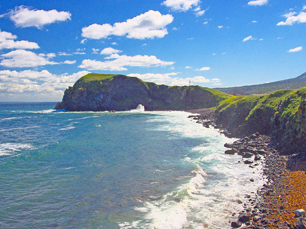 季節限定だが広い笹原一面に咲き乱れるエゾカンゾウを前掲に聳える利尻山は外せないスポット。ポロフンベは礼文島を望む西海岸線にあり意味は「大きいクジラ」と云う事になるのだが、地形的な特徴も伝承もはっきりしない。ポロフンベは、ポロフムウシベ「大きな膨らみの有る海岸」で、大磯という地名はポロフンベを意訳したのかも。古くから利尻山は航海の重要な目印であった様で古文書に登場する。