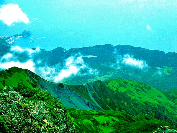距離6.9km、登り約5~6時間、下り約3~4時間。山頂で1時間の休憩を考えると天気の良い日でも11時間は必要となるので早朝の登山が条件。車で行ける北麓野営場から登山開始=3合目(甘露泉水)=環境庁の日本名水百選にも選ばれた「甘露泉水」先は水場はないので十分に補給。1人1.5リットルは必要。分岐点=ポン山、姫沼方面と利尻山の分かれ道。山頂を目指す方は右へ。右へ行くとすぐ「乙女橋」があります=標高410m(野鳥の森)=エゾマツ・トドマツなどの森が続きます。比較的道幅も広く歩きやすい。野鳥のさえずりも聞こえます=標高615m=5合目ぐらいまでは単調な登りですが、道幅が狭くなりジグザグの坂道となります。道の両側からの樹木の枝に注意、サングラスや帽子で保護してね=6合目(第一見晴台)=展望が開けて礼文島や鴛泊市街が見えます。ここでちょっと休憩して呼吸を整えましょう。ゴロゴロ石の登りとなっていますから足下に注意=7合目(七曲)標高900m=ここからは傾斜はきつくジグザグの道で高度を上げていきます。眼下には姫沼がみえます。8合目(長官山)標高1.218m視界が開けまるで絵のような景色が目の前に。ここから見る利尻山はすばらしいです。引き返すならここで。=利尻山避難小屋=標高1.230m約30人ほどの避難が可能ですが設備は何もありません。注意書きをよく読んでキレイに使いましょう。避難小屋を過ぎると高山植物の花畑が現れ、登りが急になります=9合目=標高1.400m看板には「ここから正念場」と書いてあります。本当です。9合目を過ぎ山頂に近づくにつれて傾斜が増し、足場も悪く滑りやすくなるので注意しましょう。危険な個所にはロープが張られています=沓形分岐=標高1.580m沓形ルートとの合流地点。この先のガレ場は滑るので登り、下りとも注意しましょう。一頑張りして=利尻山=標高1.719m山頂到着お疲れ様でした。下りはかなりきついです。下りもかなりの体力を使うことを頭に入れ体力を温存しておこう。