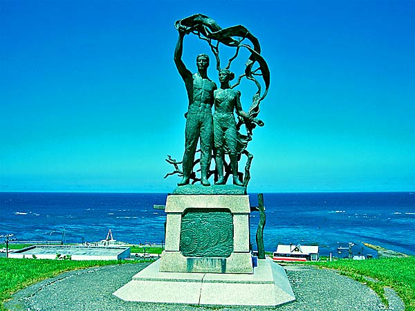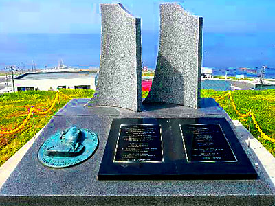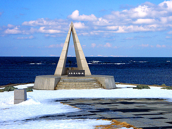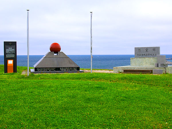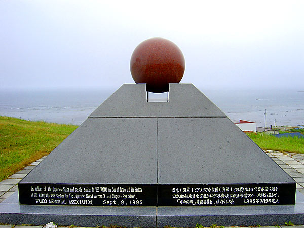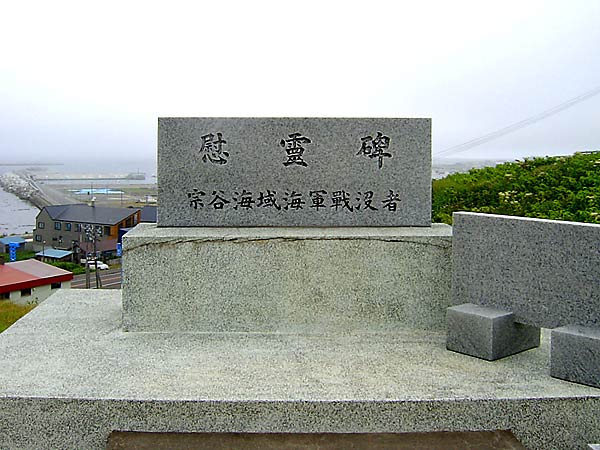 宗谷海域海軍戦没者慰霊碑"太平洋戦争中の昭和18年10月、宗谷岬沖で日本海軍によって撃沈されたアメリカ海軍潜水艦「ワフー号」の乗組員80名と、ワフー号によって日本海で沈められた日本商船5隻の犠牲者690名を慰霊するため、平成7年9月に日米両国の遺族と関係者とによって設立され、平和を願う両国民の気持ちが込められている。両国の平和と友情が再び壊れることのないように祈らずにはいられない。