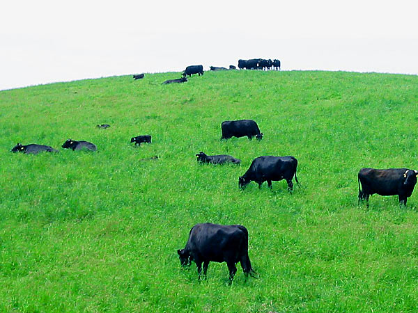広大な宗谷丘陵で外国から輸入されたアンガスやヘレフォードという肉専用牛と和牛の一代交配種『F1』を飼育、ここで育てられた肉牛は『わっかない牛』として出荷されています。飼育方法は放牧を中心とした牧草による飼育で、地域に適合した安くておいしい牛肉づくりを目指している。5月下旬から10月下旬までは宗谷丘陵に放牧されている牛たちを眺められます。なお牧場内の道路では車から出ないことと車の窓は開けないこと。