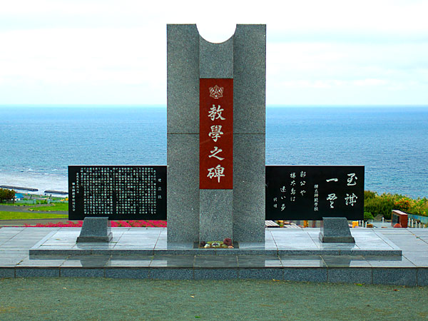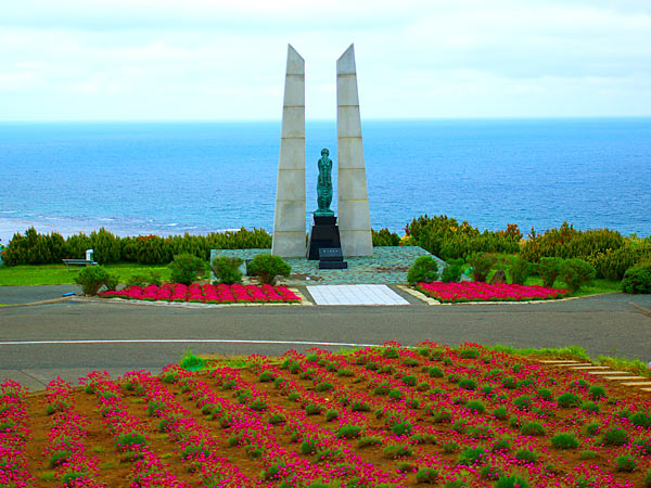 稚内公園内の代表的なモニュメント。以下は氷雪の門の碑文より『人々はこの地から樺太に渡り、樺太からここへ帰った。戦後はその門もかたく鎖されたそれから18年、望郷の念止みがたく樺太で亡くなった多くの同胞の霊を慰めるべく、肉眼で樺太の見えるゆかりの地の丘に、木原豊次郎氏、笹井安一氏の熱意と、全国樺太連盟の賛同、並びに全国からの心あたたまる協力によって、ここに記念碑を造る氷と雪のなかで、きびしく生き抜いた人々を象徴する女人像、望郷の門、霊石を三位一体とする彫刻家本郷新先生の力作がここに出来上がったこの記念碑を氷雪の門と命名した』これ以上の説明はいらないだろう。