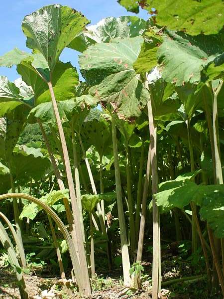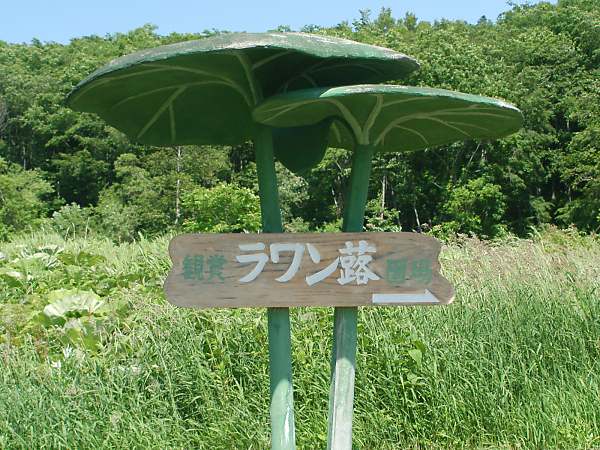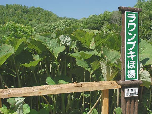足寄町の螺湾川沿にはかつて今では幻となった高さが4mにもなる巨大アキタブキが自生し、その下を馬に乗って通る事ができたという。今ではフキの乱獲などで小型化し大きくても2m程。足寄町では螺湾川に沿って自生するアキタブキを『螺湾ブキ』として保護育成し持ち出しを禁止、北海道遺産にも指定された。道内で山中深く人の踏み込んだ事のない様な所に行くと、高さ2mに近いアキタブキは珍しくはないが高さが4mとなると別、そこでは誰でもがアイヌ伝説のコロポックルになれる別世界となります。4mには及ばないも巨大なラワンブキはラワンブキ観賞ほ場で見られる。入口に目印となるモニュメントが有ります。