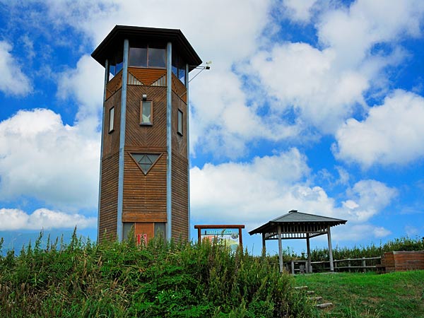 えりも岬はかつて広葉樹を主とする原生林で覆われていたが開発で原生林は切り開かれた岬は強風にさらされ砂漠化してしまった。大地から強風によって巻き上げられた赤土は海上10km沖合いに達し、漁業に及ぼした影響は計り知れないものが有りました。その岬の緑化は大変で半世紀をかけてここまで回復させたものです。緑化に使われたクロマツだけが砂漠化した台地を生き抜いた唯一の木でしたが、今度は元々この土地に生えていた木々を植えて植林前の前の森に戻していく段階に入ってきた。展望塔は高さ4階程ほどで窓が自由に開けられ眺望は完全に360度と見事。
