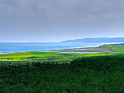 日高山脈の南端に位置する襟裳岬。岬先端からから沖に2kmにわたって大小の岩礁群が点々と浮かべながら太平洋に徐々に沈み込み込む。岬の沖は黒潮と親潮がぶつかる潮境となつていて北海道有数の好漁場になっている。その豊かな海と岩礁帯がアザラシの生息を支えるとともに日本有数の繁殖地にしている。植物は丈が短く茎が太くなることで厳しい自然環境に適応し名産日高昆布を作り出している。また襟裳岬は日本屈指の強風地帯で風力発電の施設も有る。◇えりも町東洋襟裳岬