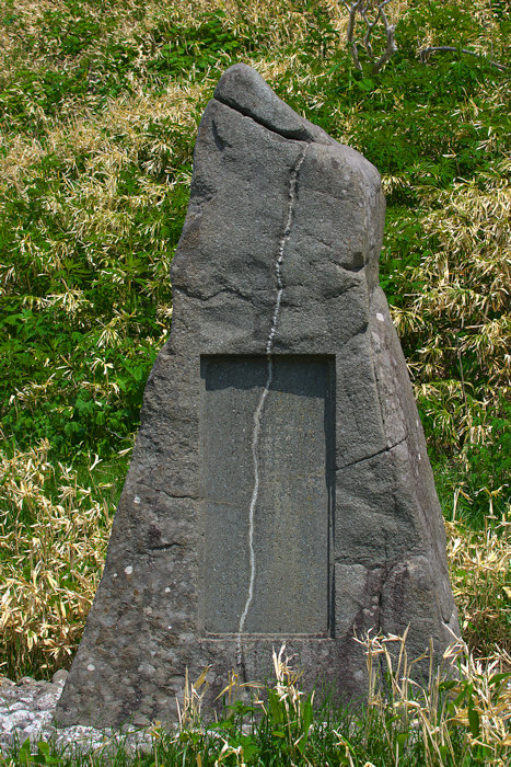 記念碑とあるが通称・黄金道路と呼ばれる国道建設工事で無くなった方の慰霊碑。開通を目前にした昭和9年3月13日から14日にかけての記録的な豪雪で現場は埋もれ工事まままならない状況に陥り、作業員を待機させていた土工部屋3棟のうち2棟が大規模な雪崩に直撃される。直撃を免れた土工部屋に居た人々によって救助活動が行われ、一通りの救出作業を終えて部屋に戻って休んでいたとき第2波の雪崩に直撃されて18名(21名?)の犠牲者を出したが、連日の”発破作業”による震動が雪崩を誘発する遠因となった可能性は否定出来ない。雪崩事故のあったタニイソから移設した殉職記念碑では黄金道路工事全体の殉職者数が18人となっているが、この工事ではタコ部屋もあったようなので実際の犠牲者はもっと多いだろう。◇所在地:広尾町ピケタヌンケ