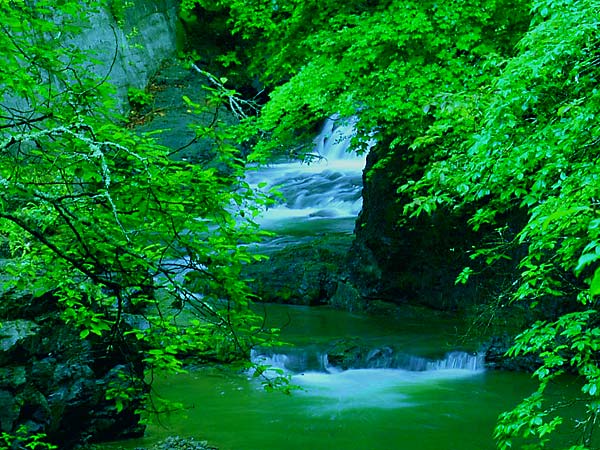 国道から分岐してまもなく本別公園がありますが、幽仙峡は公園より奧、本別と足寄町稲牛の中程の深い森にあります。道道は国道から7.5kmで終点となりますが、その先も林道が続き舗装が切れるとまもなく鹿防止のゲートがあります。通行止めでは有りませんが開けたらまた確実に閉めてください。ここから先は鹿や熊の支配する野生の領域、昼なお薄暗い深い森に抱かれ道もそれ程よくないが川が大変きれいです。何度も川を渡りながら進むと『幽仙峡』という看板や東屋が有る。綺麗な渓谷で特に紅葉の季節は絶景、車から降りて歩くと、川のせせらぎの音、風にさわめく木の葉の音、小鳥のさえずりに混じって滝の音が。本別川の幽仙の滝、本別川支流、霧糸の滝などが楽しめます。また渓流はオショロコマなどもみられると言うが期待はしない事だ