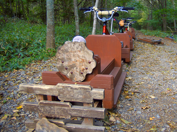 自転車を改造した足こぎトロッコで士幌線の廃線跡に敷かれた木製レールの上を進むというもの。森林浴と自然観察を兼ねて立ち寄ってみては。一人でも良いけど仲間がいた方が楽しそうです。コースは三の沢からメトセップまで往復約9km、冬はもう少し短くなる様です。入り口はぬかびら源泉郷三の沢にあるパーキング横◇開設期間は夏4月下旬~10月下旬、冬期は1月上旬~3月上旬で水曜定休。他の期間は不定期運行 詳しくは「十勝漫遊舎」のサイトでご確認ください。