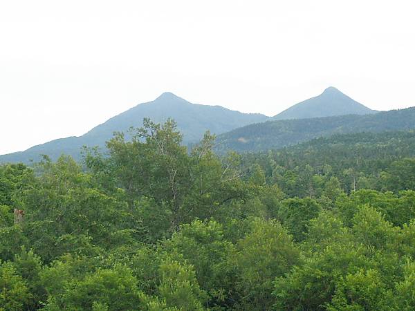 三股よりの眺めから、通称「オッパイ山」と呼ばれている二つの山の南側が西クマネシリ岳。国道273号からシンノスケクシュベツ3の沢林道へ入り(道標有り)5kmほど行った所が登山口。10台ほどの駐車スペースがあります。登山口からしばらくは川原を歩いて行きます。旧土場跡に出たら林道を30分くらい歩き、道標に従い右に行くと狭い作業道になりオオブキの覆う道になり、1200m地点から登山道となります。頂上直下は岩場になっていて少し危険な感じなので慎重に歩いてください。ここからはやや急な登りですが、10分ぐらいで頂上です。山頂からは360度の眺望が開け、運が良ければ知床連山まで。往復およそ5時間。
