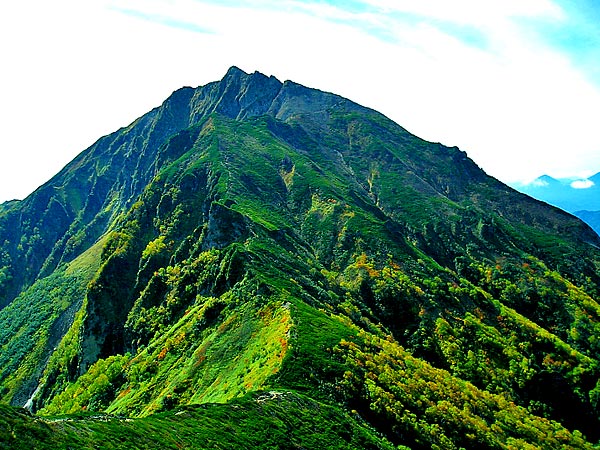 大河石狩川の源流に聳える山で十勝三股の草原から屏風の様な山並みが望めます。日帰り登山の場合はシュナイダーコースを利用します。シュナイダ―コースの登山口は国道から8.5kmで(車で30分)広場になっており、20台程の駐車スペースあり簡易トイレも設置されている。ここからなだらかな道を1時間程歩いてシュナイダ―屋根に取り付くがそこが最終水場となる。水場を過ぎて急峻な尾根を登り更にハイマツ帯を1時間程登ると頂上。山頂からの眺めは素晴らしく、北に表大雪の山々、南にウペペサンケ、ニペソツ、東にオッパイ山を眺める事ができ、西に沼の原、トムラウシを見渡せ、ここから表大雪への縦走路が伸びています。ニペソツと比較しても眺望や花の種類では遜色ない山で、夏の間は様々な高山植物がたくさん咲きます。。コースタイムは往復およそ10時間ほど。