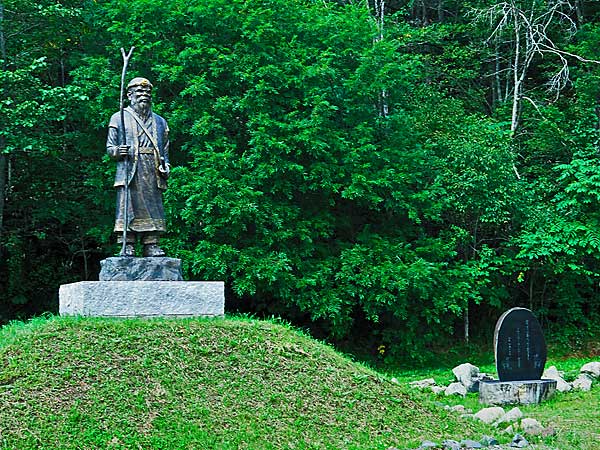 西札内公園は一本山展望台の麓、西札内防災ダムの下流にあり、東屋なども整備された綺麗な公園です。園内にはサツナイウンクルの祖の像と、幕末の探検家である松浦武四郎が1858年旧暦7月12日に大樹より西札内、札内川右岸のサツナイコタンに訪れ宿泊した時に詠んだ詩碑が有る。紀行を記録した戊午東西蝦夷山川取調日誌の第48巻から「サツナイ村 此処サツナイの本村也。川の北岸に村居す」「此処人家五軒有」「家主当所乙名マウカアイノ46才、余此家にて止宿す」「是は此度召連来たりしイソラムの兄なりけるが」と有る。ここには二泊し村人を集めて酒宴を催している。マウカアイノは当地の酋長でアイヌ人物誌にも登場する。