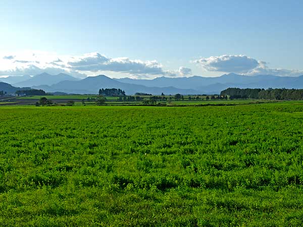 西戸蔦別から東岩戸に抜ける途中の風景。山岳の展望は帯広側の東岩戸には負るが田園風景では此方の方が遙かに良いと思います。カメラマン泣かせの電柱も殆ど気になりません。岩戸線と繋がっているので合わせて巡ろう。岩戸線では長芋畑が面白い。毎年同じ所に有るとは限らないが、それもまた再訪への誘惑となるから楽しい。