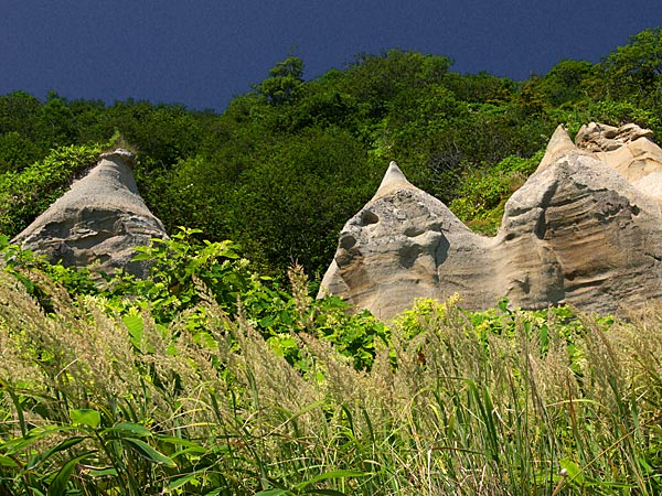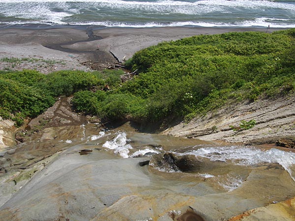 浦幌十勝川から昆布刈り石に向かうとまもなく海岸に下る道が有りますが、坂を下る途中と、さらに進んでいくと赤い鳥居が見えてくるあたりに湧水がある。どちらもホースで引かれていているが奥の方が湧水量は多い。黄金の滝の側にも湧水があったというが海岸に下るルートが完全に消えてしまい地形的に行くことも水汲もできないようです。